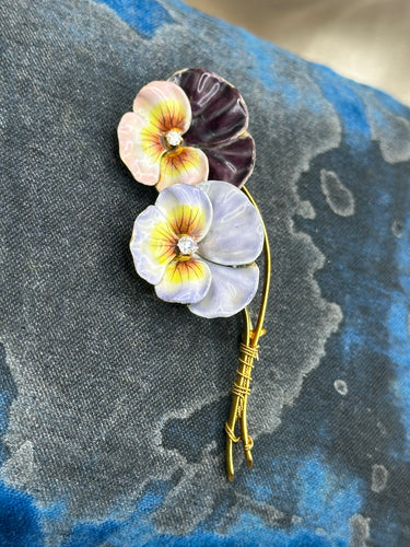 Enamel Flower Brooch with Old Mine Diamonds