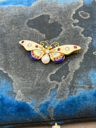 Ruby, Pearl & Diamond with Enamel Butterfly Brooch